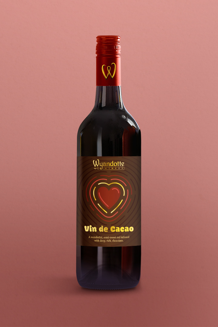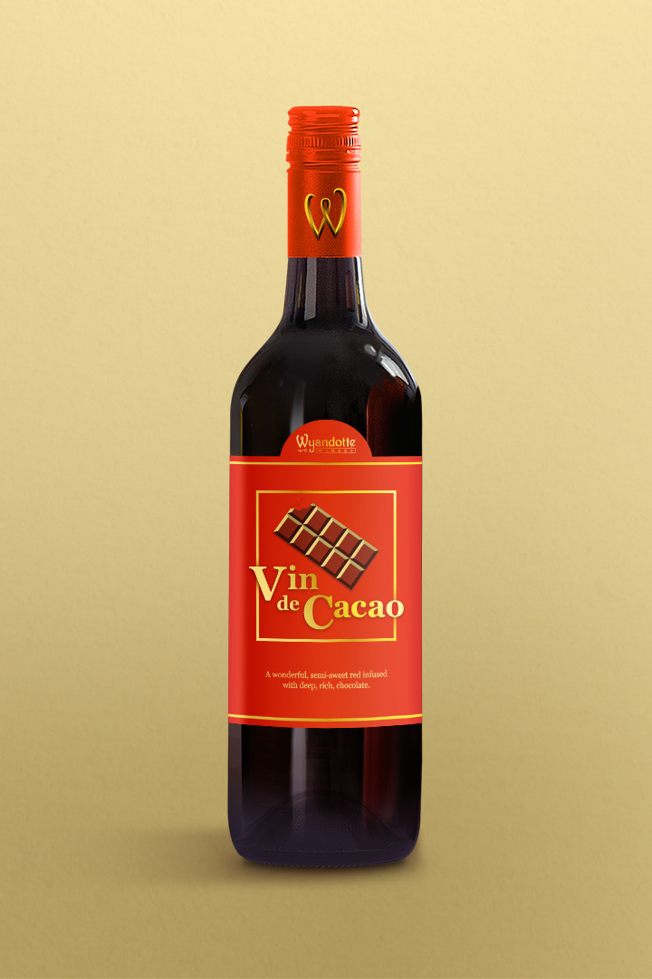 Vin de Cacao is a red wine infused with chocolate. It's unique flavor is semi-sweet, making it enjoyable with a meal or as a dessert wine. Here are two different designs I explored for the label